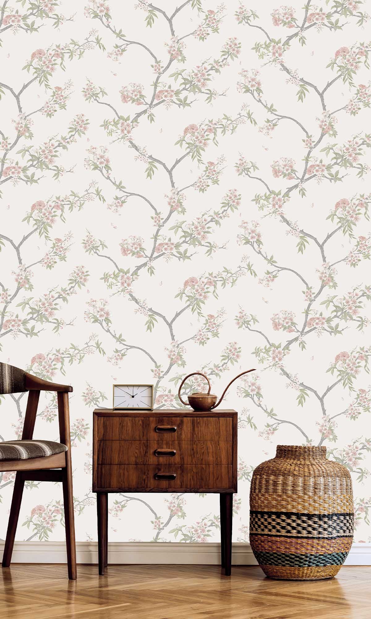 Bring the feeling of spring indoors with the Blooming Cherries Wallpaper. This isn’t your typical floral print—think cherry blossoms drifting gracefully across your walls in a soft, painterly style, inspired by the serene beauty of Japanese gardens. The delicate brushstrokes and gentle color palette create a tranquil, dreamy vibe that feels effortlessly elegant, never over-the-top.