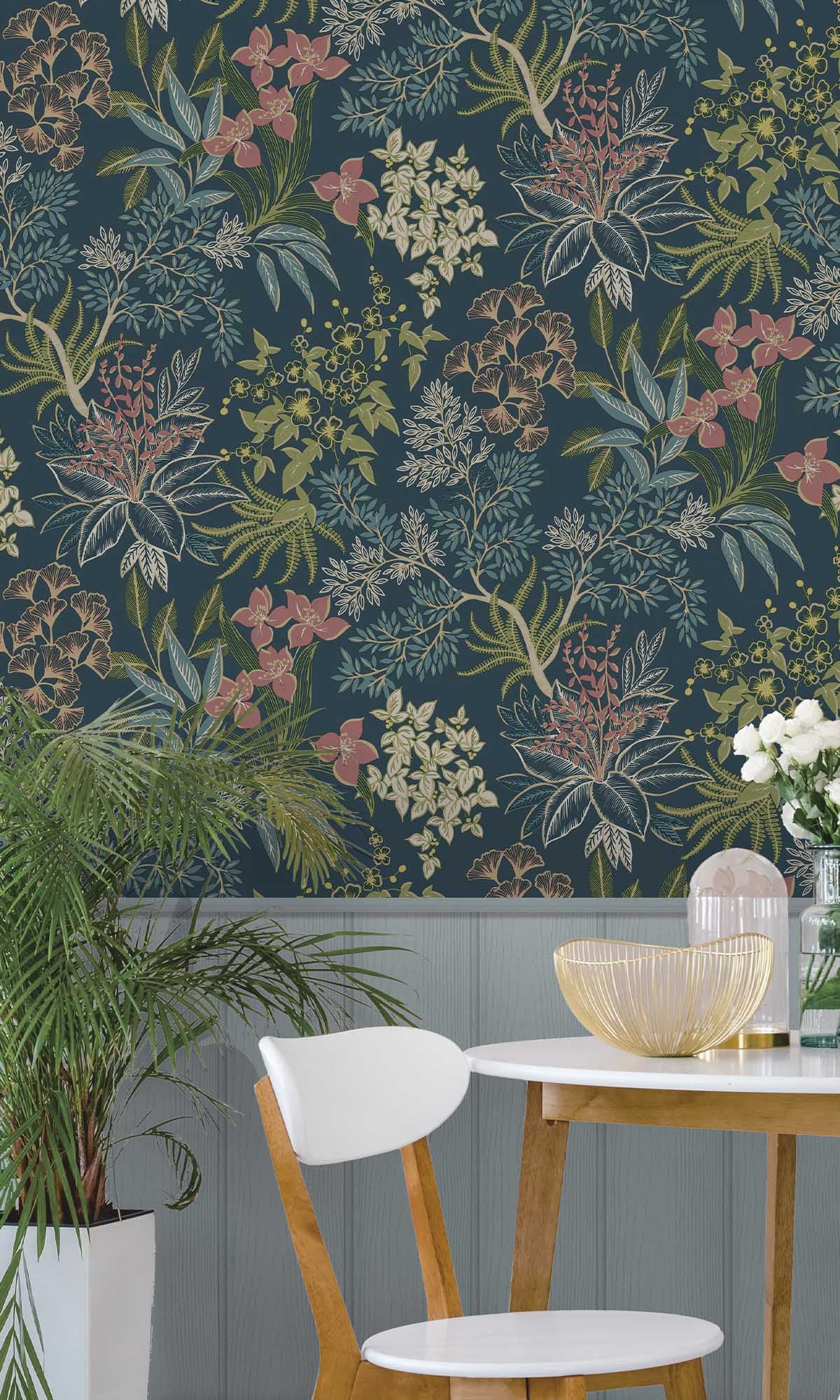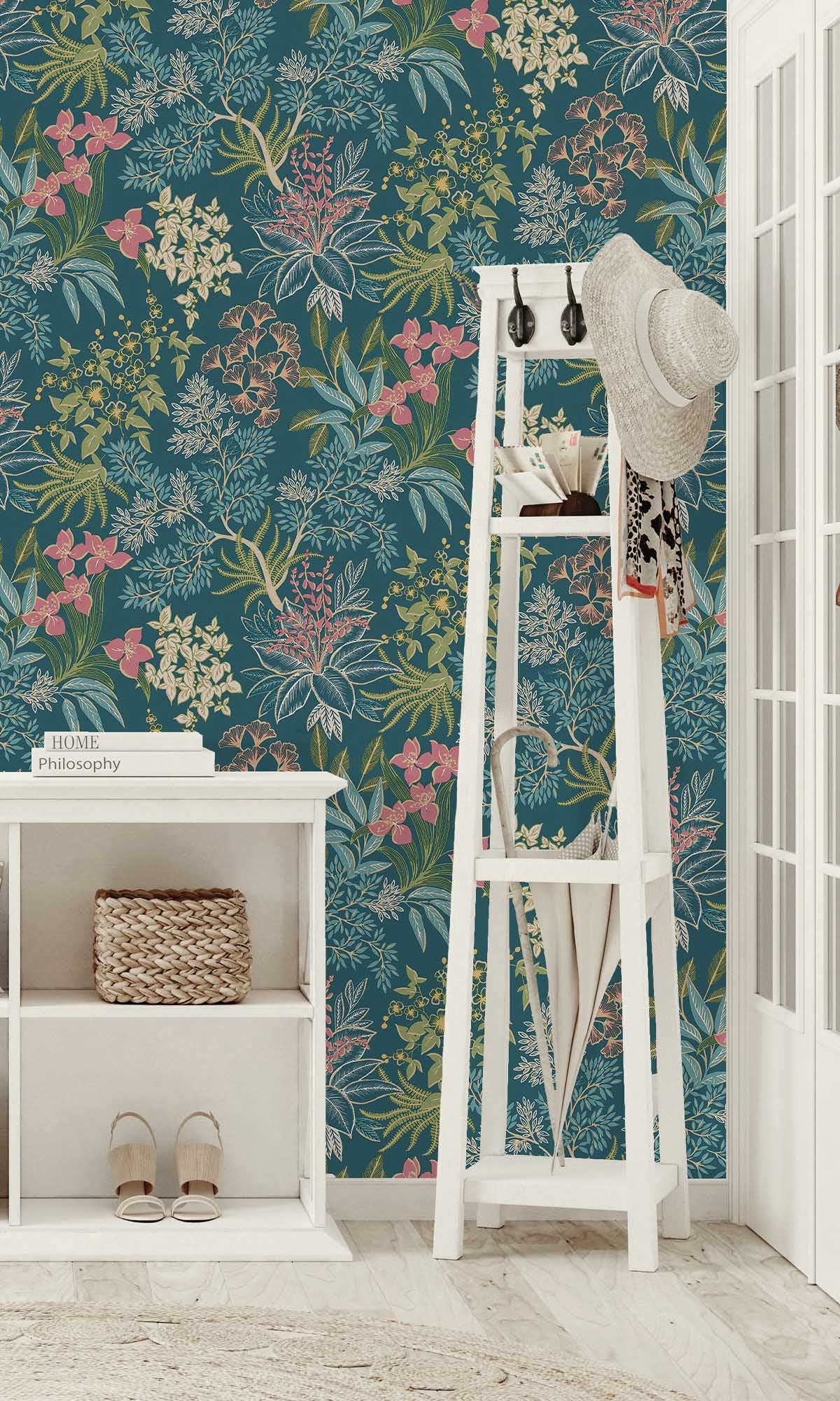 Let’s be honest: your walls are practically crying out for some excitement, and the Lush Foliage Wallpaper is just the ticket. Imagine a jungle atmosphere with a sprinkle of glam—it's like your living room has stepped right into its own nature documentary. You’ve got this vibrant mix of trees, flowers, and all kinds of lush greenery, so it doesn’t just sit there looking nice; it actually breathes life into your space. And those little metallic accents? They catch the light perfectly, making your walls shimmer (but in a classy way, not like a flashy Vegas sign).