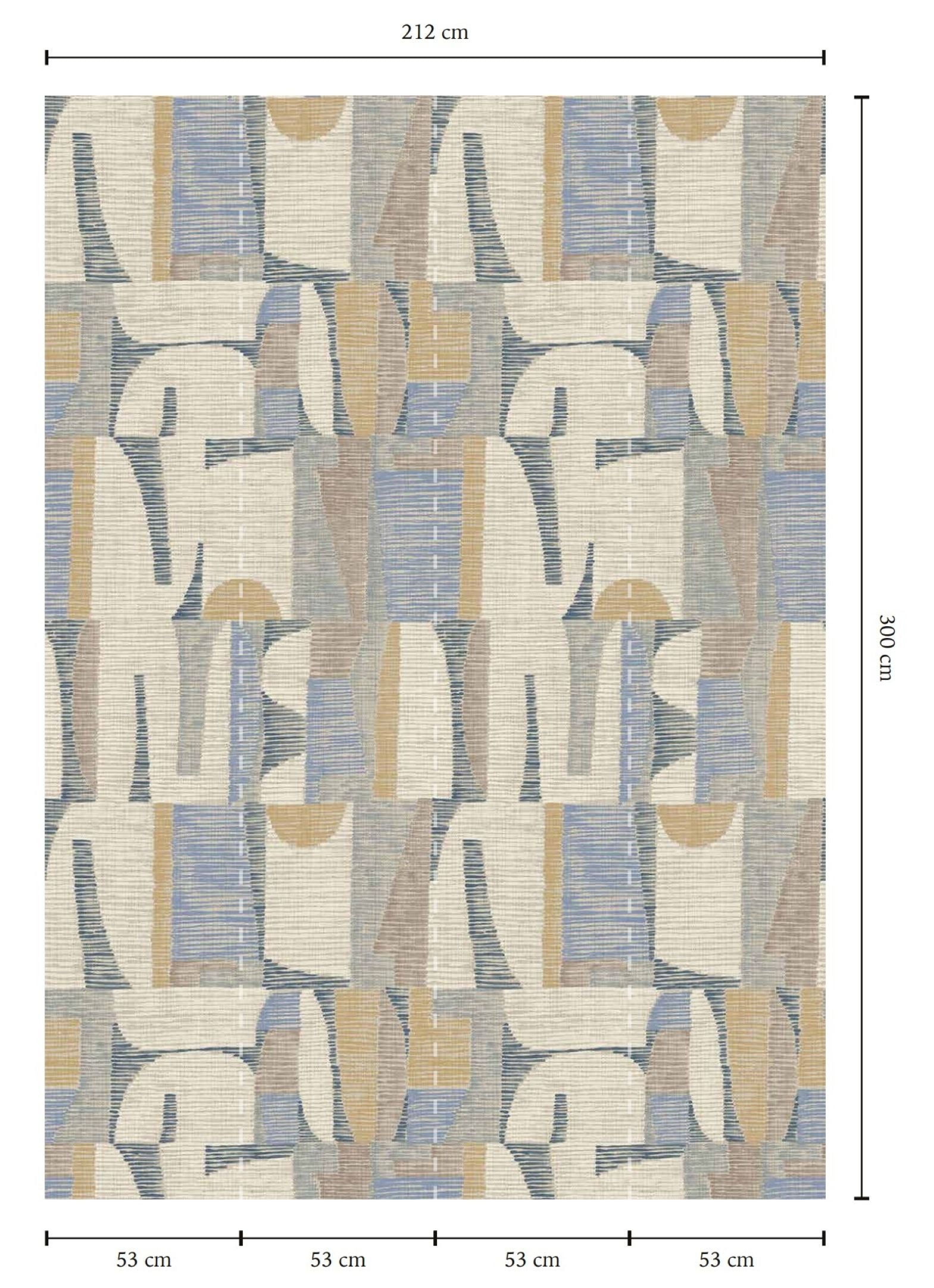 H: 300cm x W: 212cm (4 Panels of 53cm each). Repeatable in width.