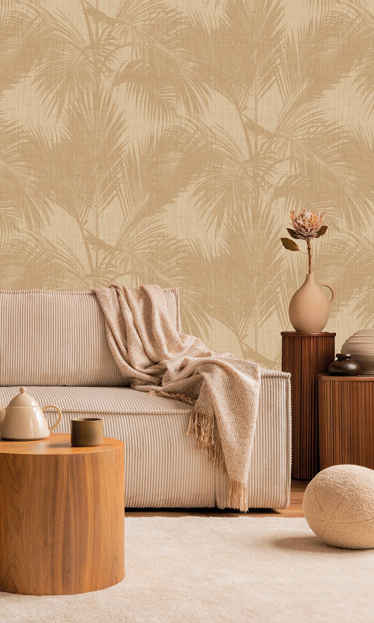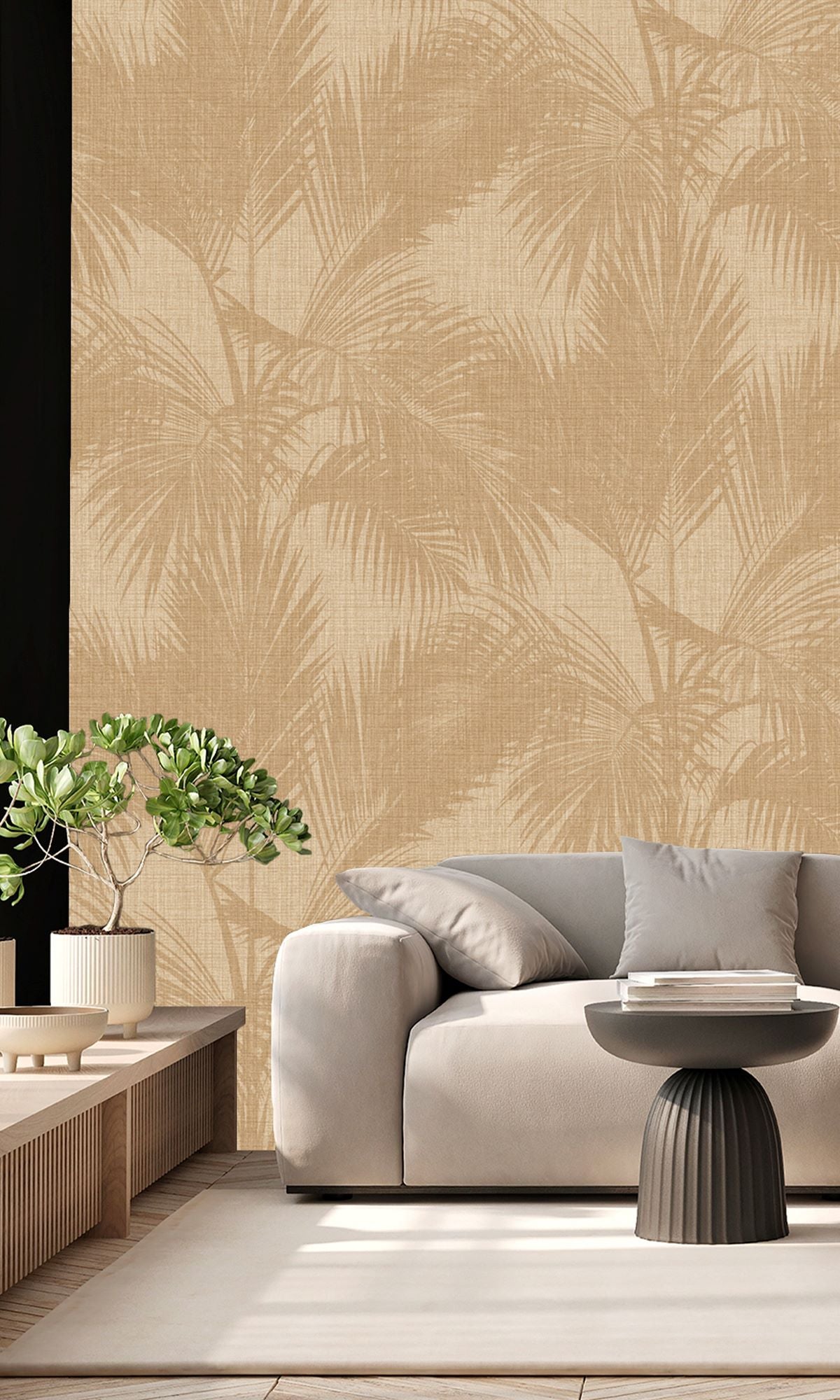 Your walls can be transformed into a tranquil tropical haven with our Imani Martinique Wallpaper. The beauty of palm tree silhouettes is captured in this gorgeous 4-panel mural, which infuses homes and private areas with a sense of sophistication and serenity.