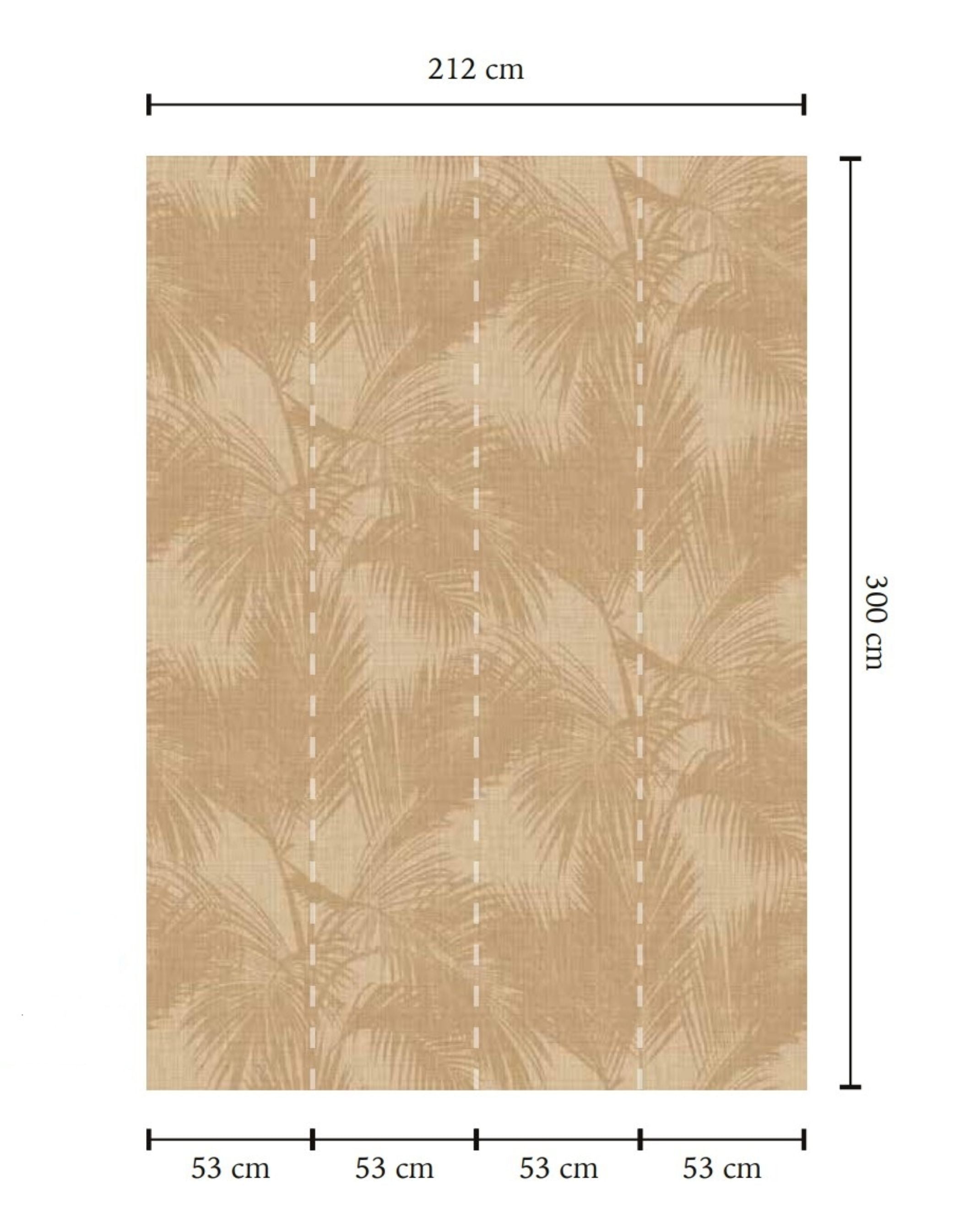H: 300cm x W: 212cm (4 Panels of 53cm each). Repeatable in width.