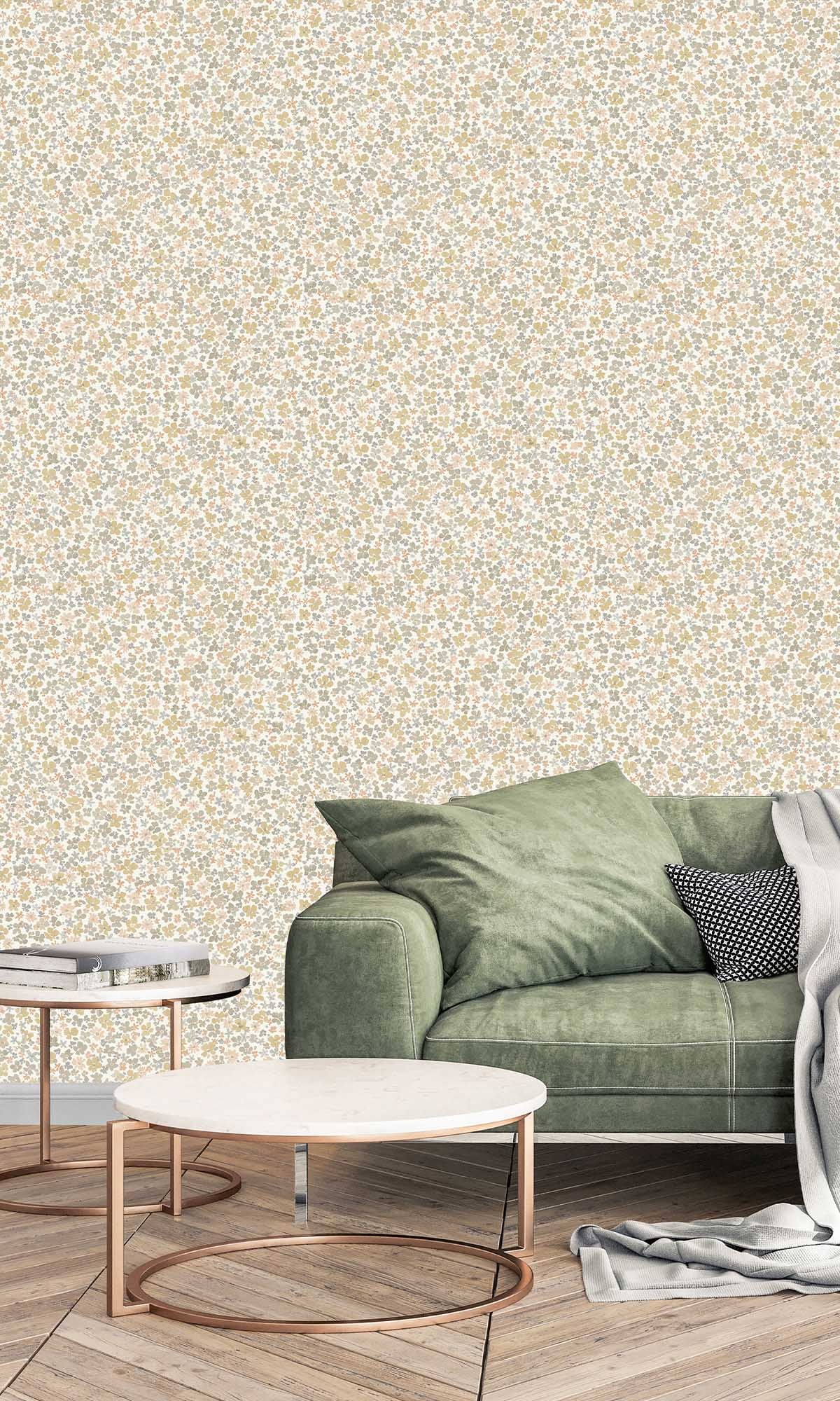 Our Little Dreamers Veronica Wallpaper, a soft and endearing wall covering inspired by nostalgic, mid-century floral motifs, will provide timeless elegance to your house. The delicate, repeating pattern of chrysanthemums and phlox in this exquisite design is entwined with leaf-dense elements to give a naturally rich and exquisitely layered appearance. The wallpaper has a genuine ditsy-style appeal because the flowers are little, dispersed, and arranged naturally.