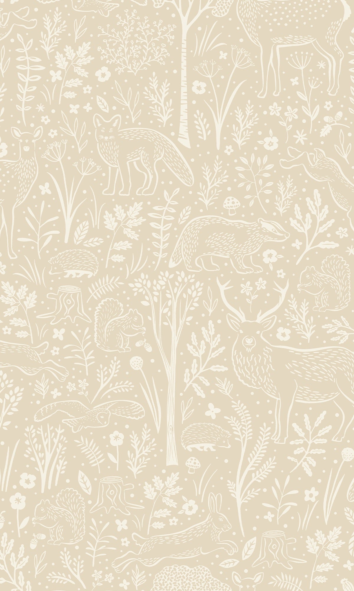 Our Little Dreamers Woodland Animals Wallpaper is a lovely and imaginative design ideal for nurseries, bedrooms, and comfortable play areas. It will help you create a serene, storybook-inspired setting. This charming wallpaper has a gentle, subdued taupe or beige backdrop that creates a peaceful, organic tone—perfect for creating a tranquil space for young children.