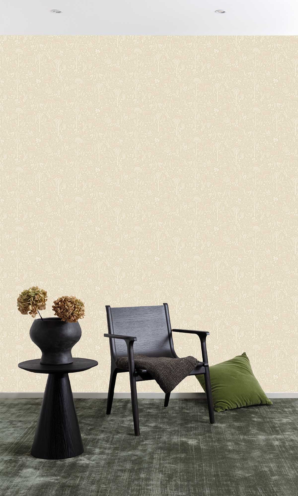 Intricate, tone-on-tone graphics in a soft off-white hue bring the design to life. The end effect is a delicate, refined contrast that is airy, contemporary, and visually soothing. Nestled among delicate trees, lush greenery, mushrooms, and subtle floral accents, the design is full of charming woodland features, such as graceful deer, joyful foxes, inquisitive squirrels, nimble rabbits, hedgehogs, and badgers.