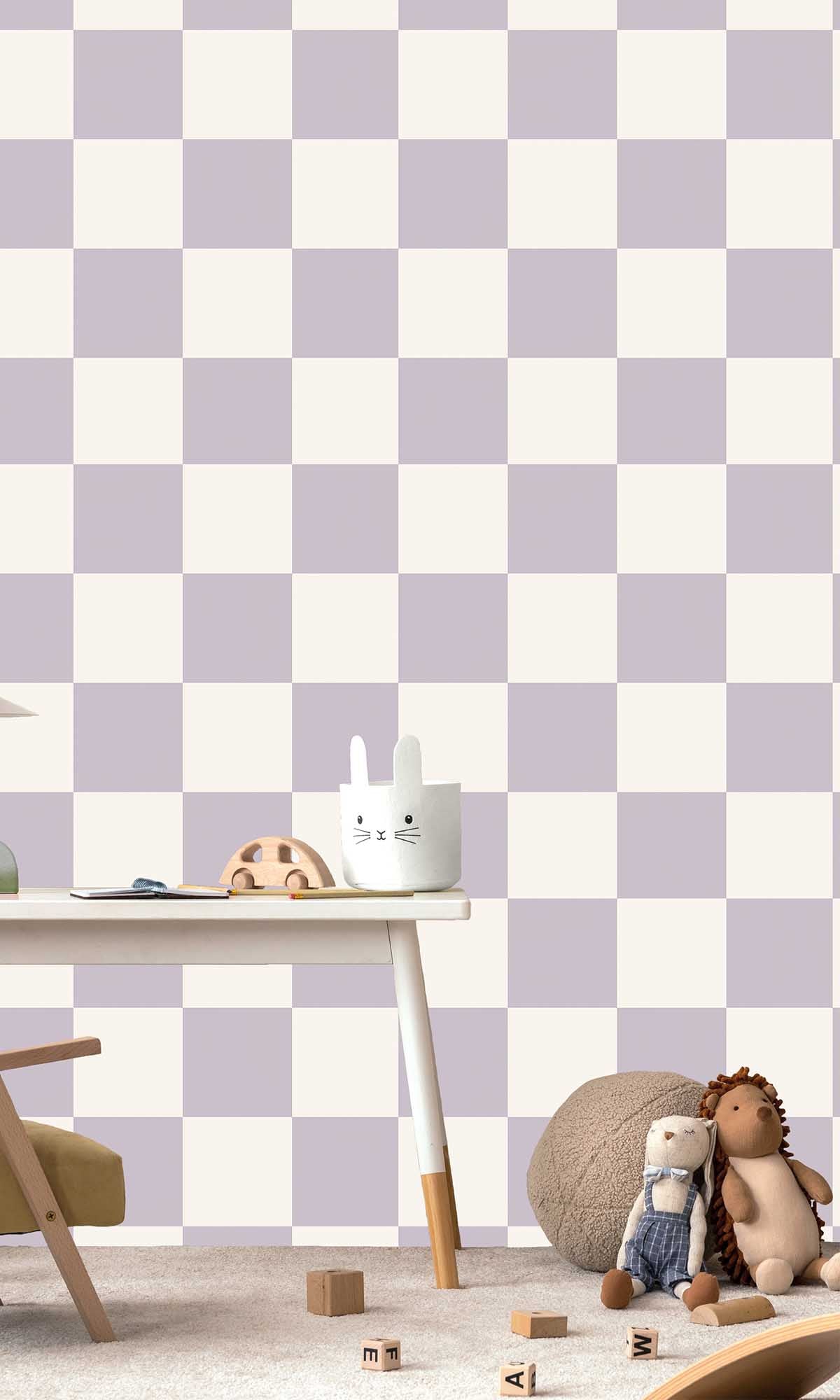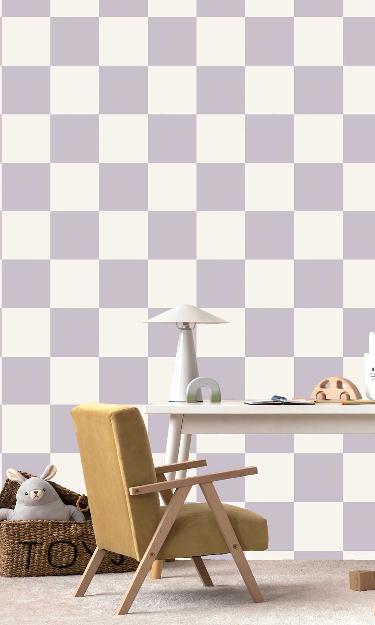The Adventure Awaits Check This Out! wallpaper offers a refined balance of visual appeal and everyday functionality. Its bold yet harmonious checkerboard design introduces a sense of liveliness while maintaining a calm, contemporary aesthetic—ideal for children’s rooms, nurseries, and recreational areas.