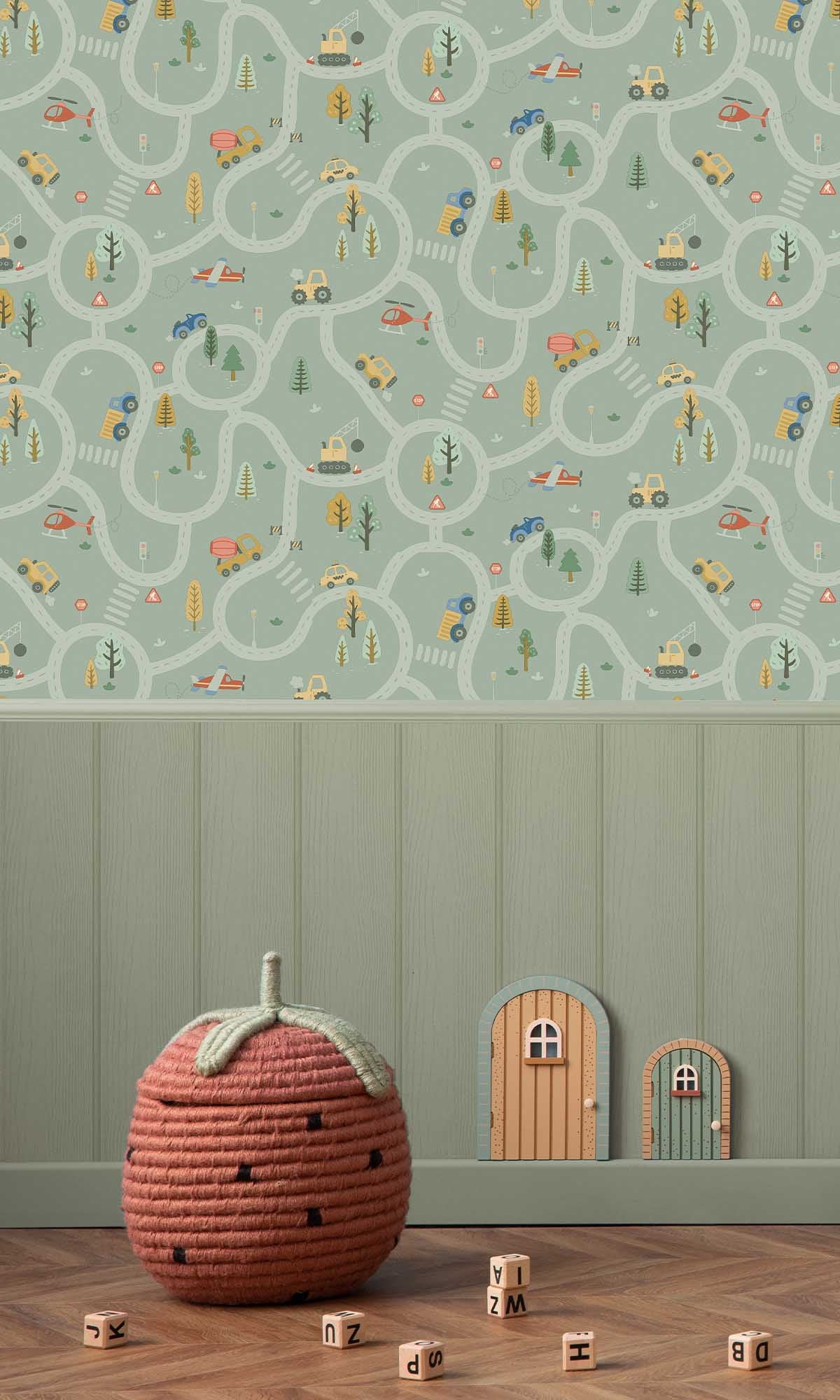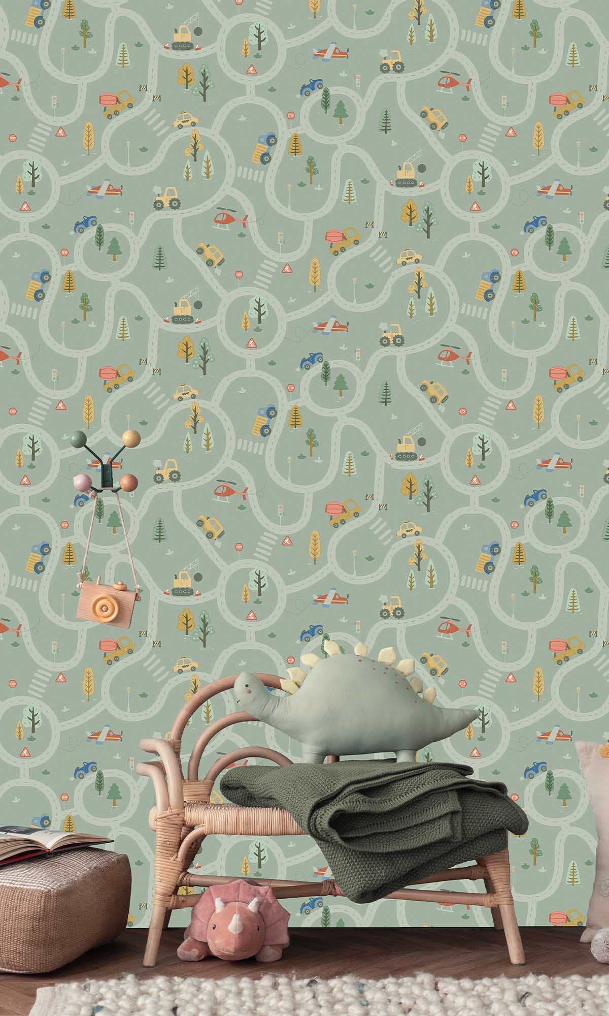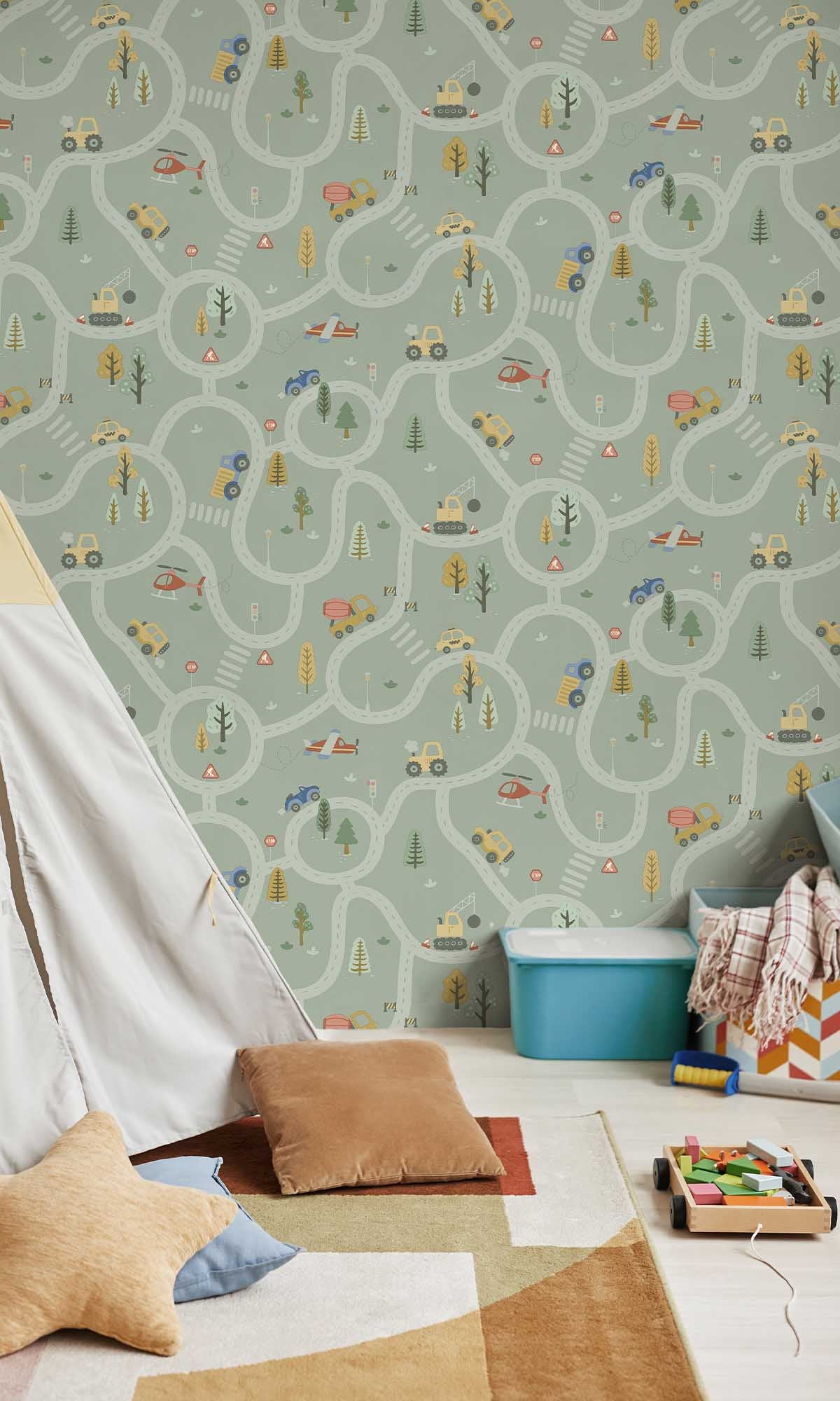 Ready to transform your kid’s room into a mini adventure zone? Just add the Adventure Awaits Roundabout Road wallpaper, and voilà—you’ve got cars racing, trucks rumbling, and planes soaring right on the walls! It’s like giving your little ones their very own racetrack and runway right in their bedroom or playroom. Honestly, it’s way more exciting than just plain paint. It really sparks their imagination! Every day feels like a new road trip, even if you’re just sitting on the floor building with Legos.