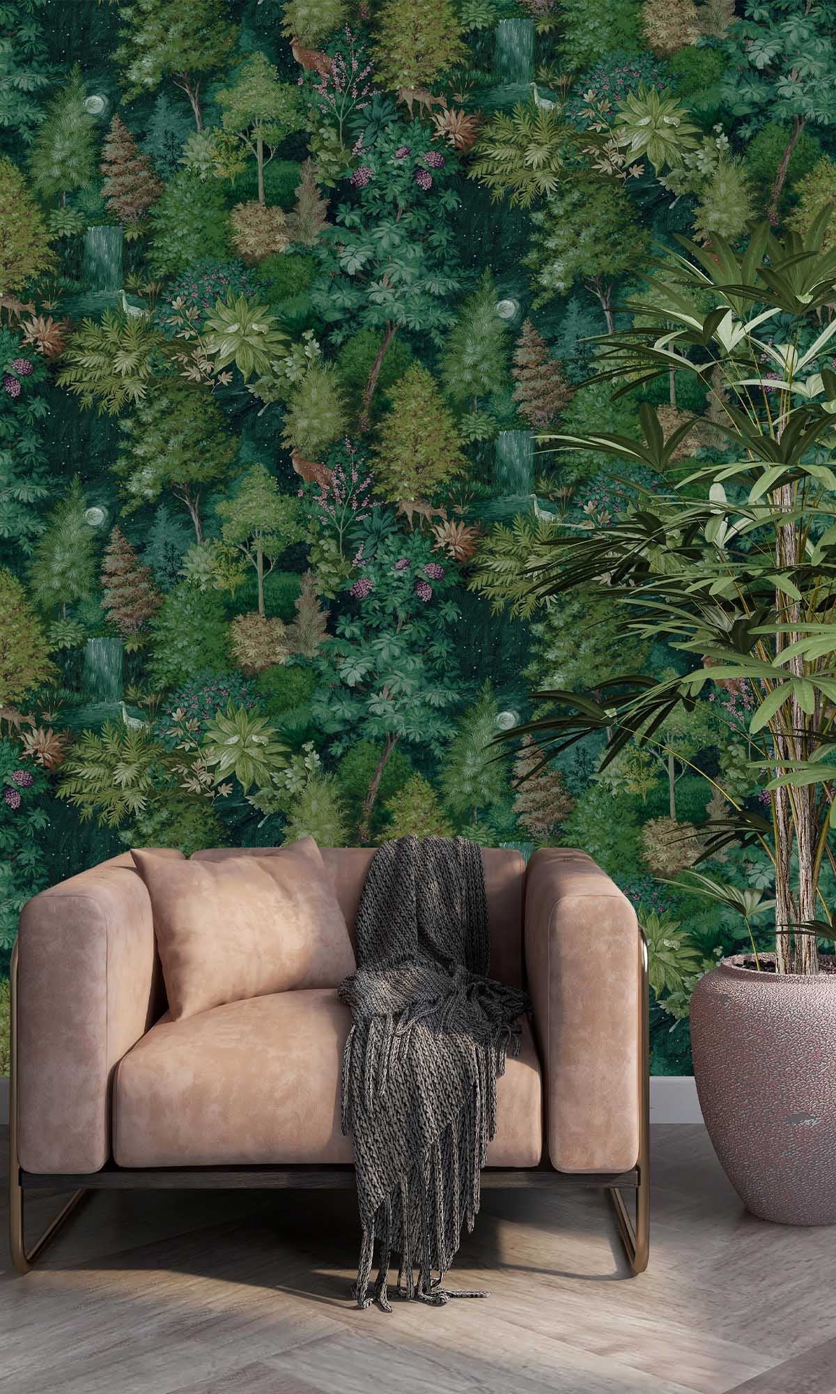Ideal for crafting a peaceful retreat in your living room, bedroom, or study, the Moonlit Forest Wallpaper turns your walls into a breathtaking landscape of tranquility and elegance. Its soft tonal variations and intricate artistry make it a perfect fit for both modern and traditional spaces, providing a timeless link to the beauty of nature.