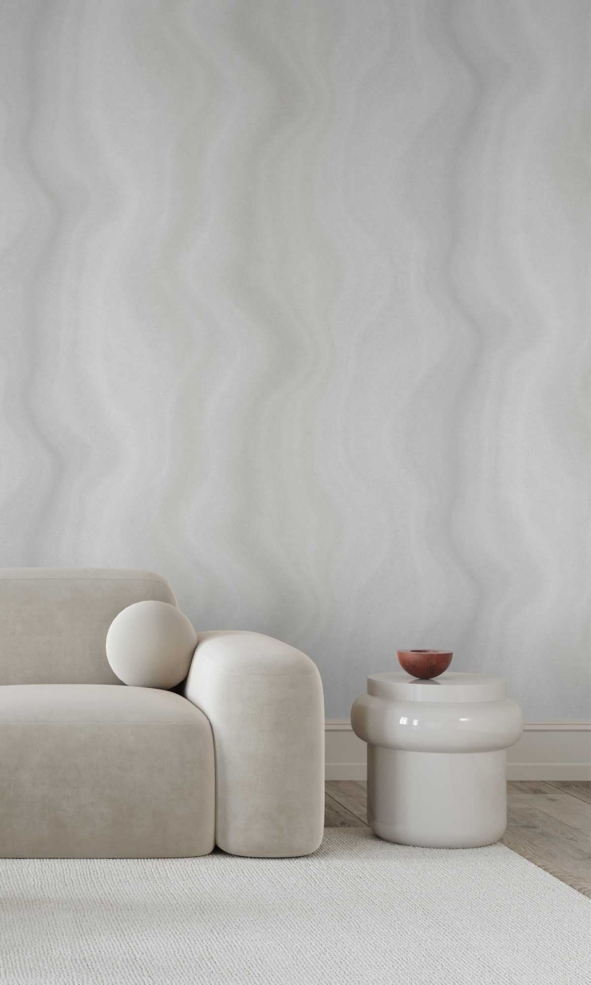 With our Hype Soft Wave Wallpaper, a modern wall covering with vertical, flowing lines that run effortlessly from ceiling to floor, you can add a touch of contemporary elegance and fluid design to your area.  This elegant design adds depth, texture, and visual balance to any interior—from calm bedrooms to elegant living rooms or contemporary office spaces—by producing a lovely sensation of movement and softness.