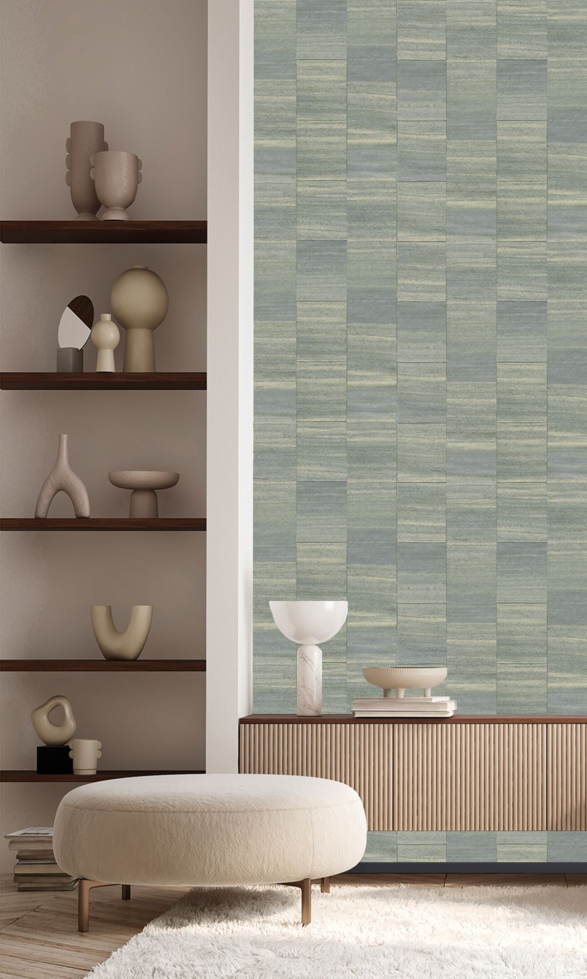 Inspired by handwoven denim swatches organized in a distinctive checkered pattern, our Serenity Fabric Squares Wallpaper will add a bold, tactile statement to your walls.  This textured wallpaper, which is designed to look like denim strips intertwined like a woven mat, effortlessly blends handcrafted craftsmanship and urban flair into any home.